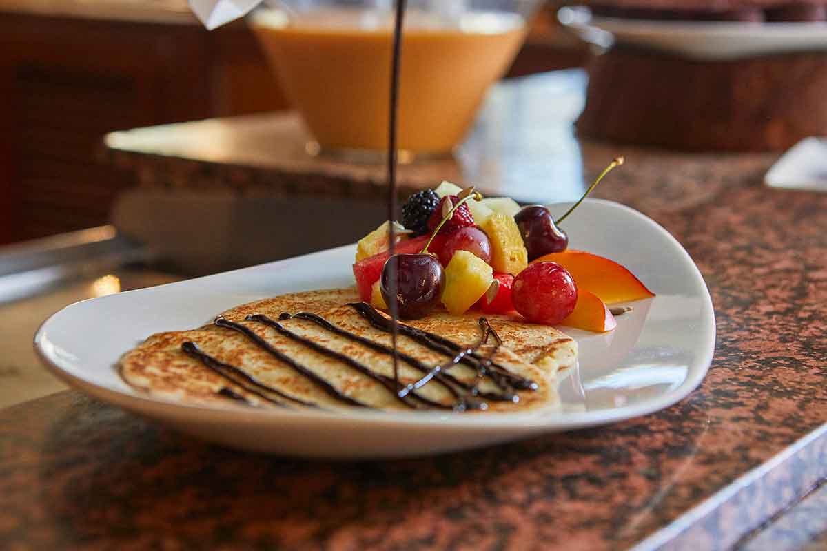 Du petit déjeuner au dîner, notre cuisine est un plaisir. Découvrez les savoureuses variétés de la cuisine nationale et internationale, dans notre Restaurant Buffet: show-cooking tous les jours, la meilleure cuisine méditerranéenne, des exotiques recettes indiennes, une exquise sélection de vins et une grande variété de desserts, où choisir est le défi.